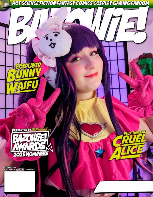 Bazowie #13 features award-winning kawaii cosplayer Bunny Waifu looking adorable on the cover, with a fun interview by Woody. Woody also writes up Amazon’s live action FallOut. Ryan Phoenix weighs in on CastleVania and Villainess Level 99. Peter P interviews award-winning costumed clip artist Cruel Alice along with some fantastic pinup photos of her.