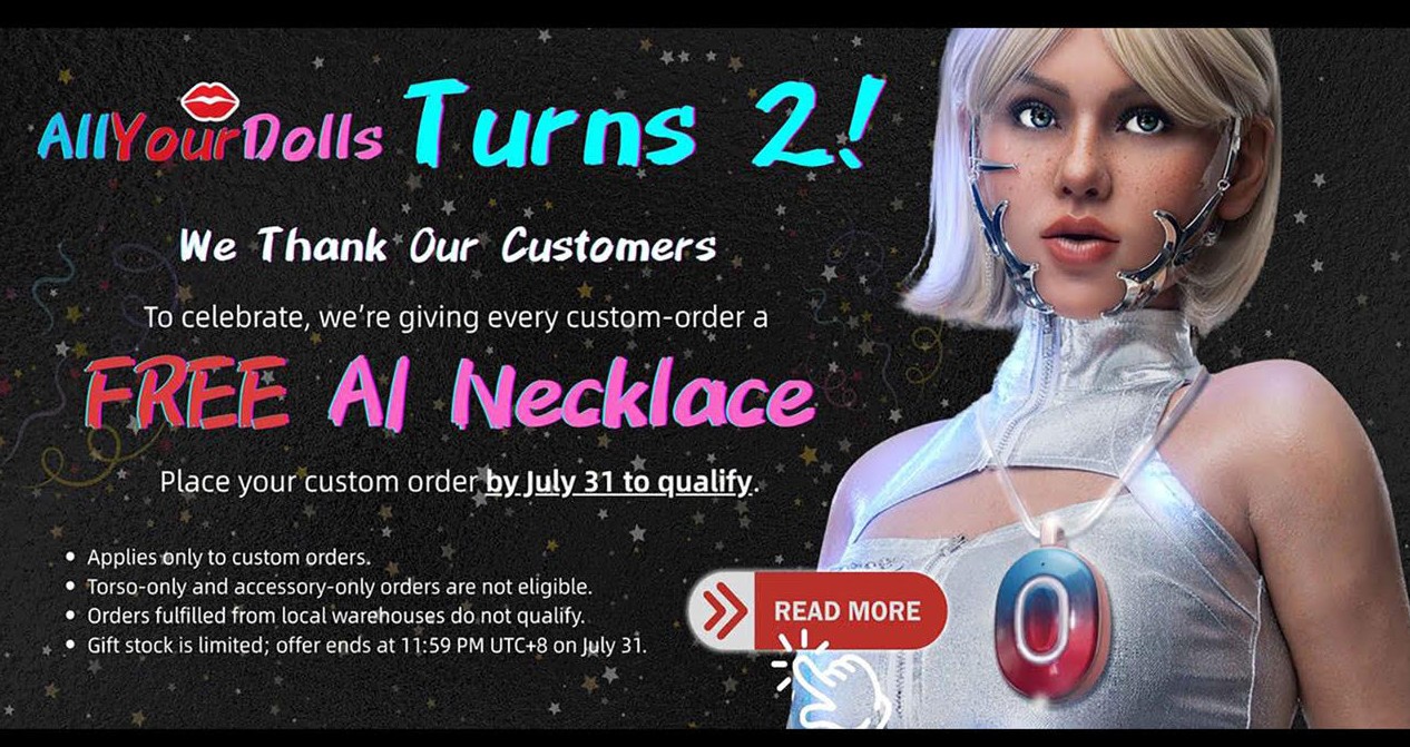 To celebrate this milestone, AllYourDolls is rolling out an exclusive anniversary promotion. From now until July 31, 2025, every customer placing a custom order will receive a complimentary AI Necklace—a limited-edition gift symbolizing the company’s gratitude. “This is our way of saying thank you,” Ken Huang says. “Wear our appreciation close to your heart.”