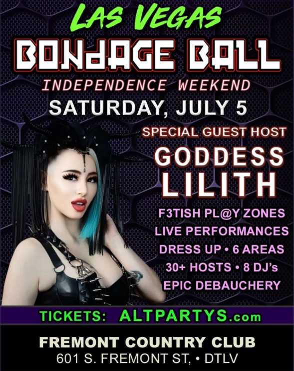 Chicago – This Saturday, July 5th, award-winning, internationally renowned, and bicoastal Dominatrix, Luxury Mistress and Fetish Model, Kink Educator, Certified Life Coach, Reiki Master, and Author Goddess Lilith is set to host the Las Vegas Bondage Ball, and you definitely want to make it part of your Independence Day Weekend plans.