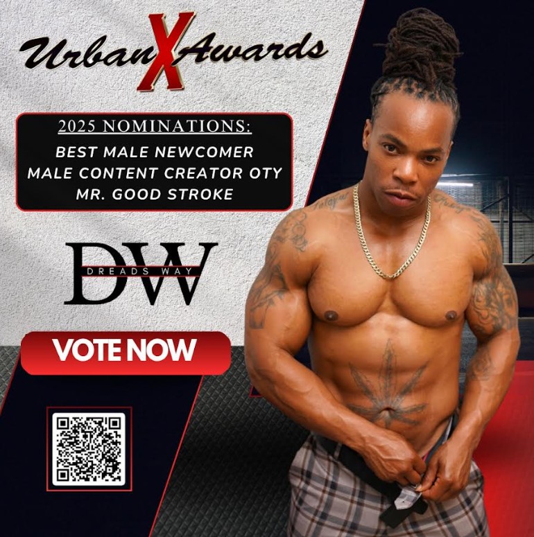Chicago – August’s Urban X Awards are heating up as adult content powerhouse Dreads Way secures an impressive four nominations, solidifying his status as a force in the industry. Known for his raw, dominant energy in BG, BBG, and gangbang scenes, this muscle-bound fitness fanatic is turning heads with noms for Best Male Newcomer, Male Content Creator of the Year, Mr. Good Stroke, and a sizzling couple’s category alongside the stunning Lyric Sky.