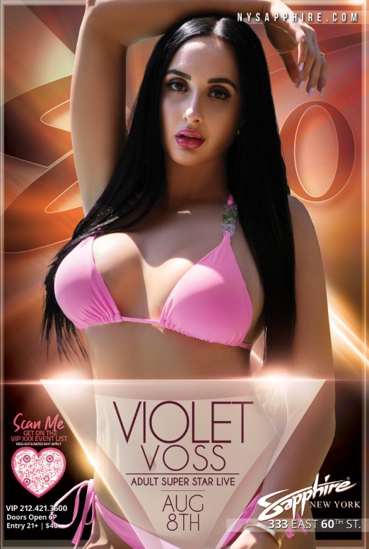 Make the night memorable and get up close and personal with Violet by buying an Adult Star Package. For more on the fantasy of a lifetime, go to nysapphire.com/events/come-meet-your-fantasy-violet-voss and click “Book Now.”