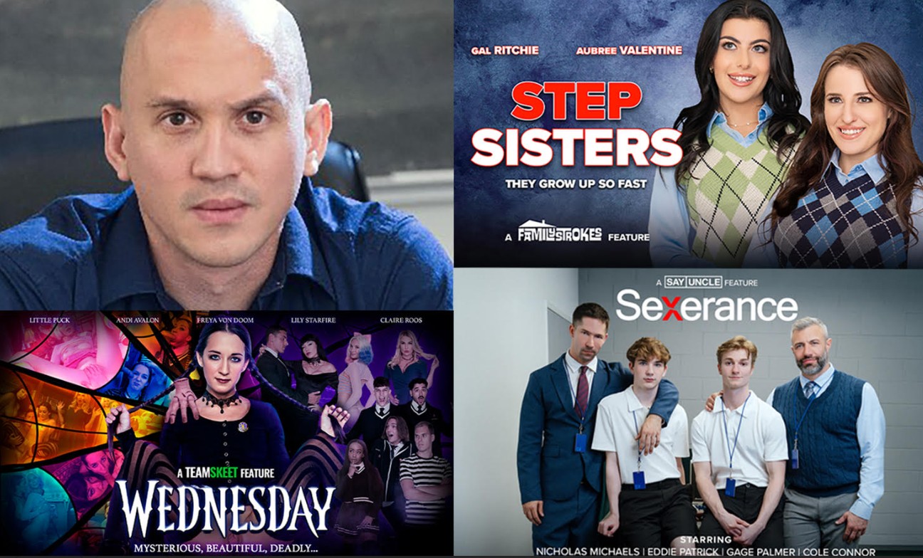 His 2026 XMA award nominations from XBIZ, in acknowledgment of his outstanding output over the past year, include nods for the “Addams Family” parody, Wednesday; his outrageous gender reversal on the comedy blockbuster, “Step Brothers,” titled Step Sisters; as well as his debut gay feature, Sexerance(SayUncle) — a surreal, erotic twist on the lauded Apple TV series, “Severance.”